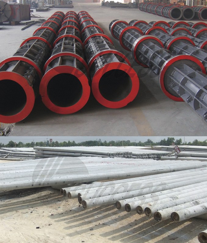 Ce moule est employé pour la fabrication concrète électronique de poteau. Sa principalement technologie de fabrication est tension longitudinale par les fils d'acier. Alors elle peut serrer l'exès d'eau dans le béton sous la force centrifuge. Ainsi, elle peut considérablement améliorer la densité et la force concrètes.