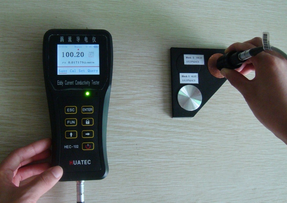 I prodotti di serie HEC-100 usano 60 chilocicli (standard industriale di aviazione) a inspirit, i dati di prova possono essere letti dentro due generi di unità (%IACS e MS/m). I prodotti possono verificare la conduttività elettrica e la resistività allo stesso tempo e comprendono le compensazioni intelligenti di decollo e della temperatura, così possono garantire l'accuratezza di prova di ogni misura. Il grande carattere e le progettazioni leggere posteriori dell'illuminazione sono vantaggiosi affinchè gli utenti prendano i dati di prova anche nello stato della scarsa visibilità. I prodotti utilizzano l'alta batteria della proprietà per assicurarsi che tenga più tempo di esercizio ed a causa della di loro mini-dimensione, voi potrebbe facile portare ed afferrare la tenuta. La progettazione dei prodotti è più vantaggi, quali gli utenti può sostituire la sonda nell'all'aperto, non deve restituire la società per regolare la sonda nell'accoppiamento del metro. Circa HEC-100, due generi di azionano le lingue (&Chinese inglese) soddisfanno la richiesta nazionale differente. Può memorizzare 1000 dati di misura, inoltre, gli utenti possono usare USB collegano il metro ad un PC per creare la relazione sull'esperimento.